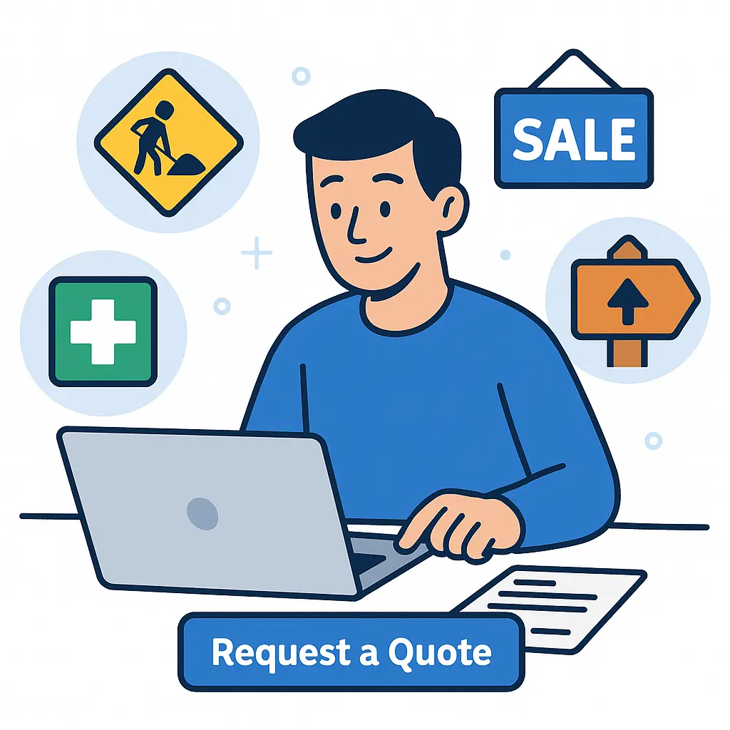 Add your required signs to your quote cart — custom, safety, or standard signage.